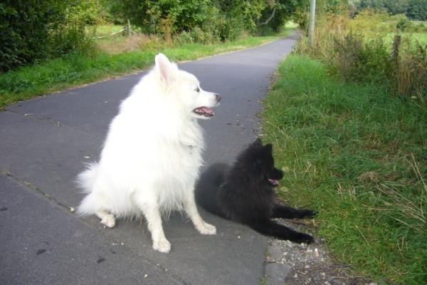 4 Monate alt, mit Nachbar Wotan (weißer Großspitz)